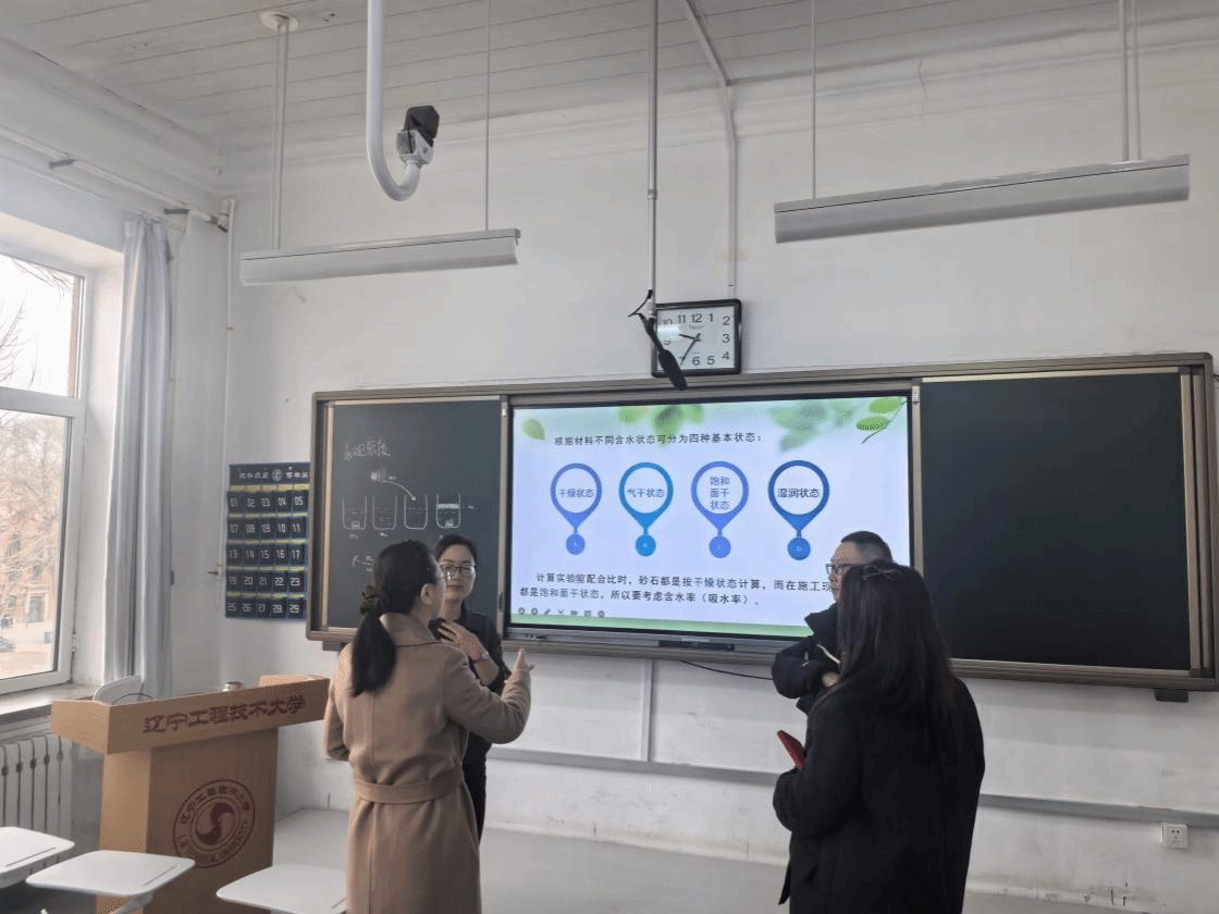 学院领导班子成员随机走进魏宝佳老师的《新型建筑材料性能与检测技术》课堂,与同学们一同聆听开学第一课。课堂上,魏宝佳老师备课充分、精神饱满、逻辑清晰、重点突出,将专业知识与课程思政有机融合,授课富有感染力;同学们精神振作、专注听讲、认真思考、踊跃互动,课堂秩序井然、学习氛围浓厚,充分展现出材料学子勤奋好学、积极向上的优良学风与昂扬向上的精神风貌。听课间隙,院领导与任课教师亲切交流,详细询问教学准备、课程安排、学生出勤及学习状态等情况,对教师的精心备课、认真授课给予充分肯定,并围绕优化教学设计、强化实践教学、深化课堂互动、推进课程思政深度融入、激发学生学习主动性等方面提出具体指导意见,鼓励教师持续创新教学方法,提升课堂吸引力与育人实效。