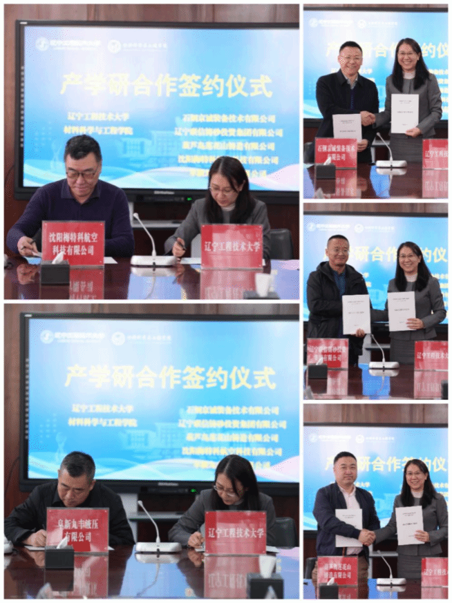 2026年3月15日上午,材料科学与工程学院在国际会议中心三楼会议室举行产学研合作签约仪式,与石钢京诚装备技术有限公司、辽宁联信铸砂投资集团有限公司、葫芦岛莲花山铸造有限公司、沈阳梅特科航空科技有限公司、阜新九丰液压有限公司等五家材料行业特色企业正式缔结深度战略伙伴关系,携手构建校企产学研实践共同体,以产教融合之力赋能材料产业高质量发展。辽宁工程技术大学教务处处长狄军贞教授、五家企业高管、学院领导班子成员及中层干部出席仪式,仪式由副院长王晓亮教授主持。