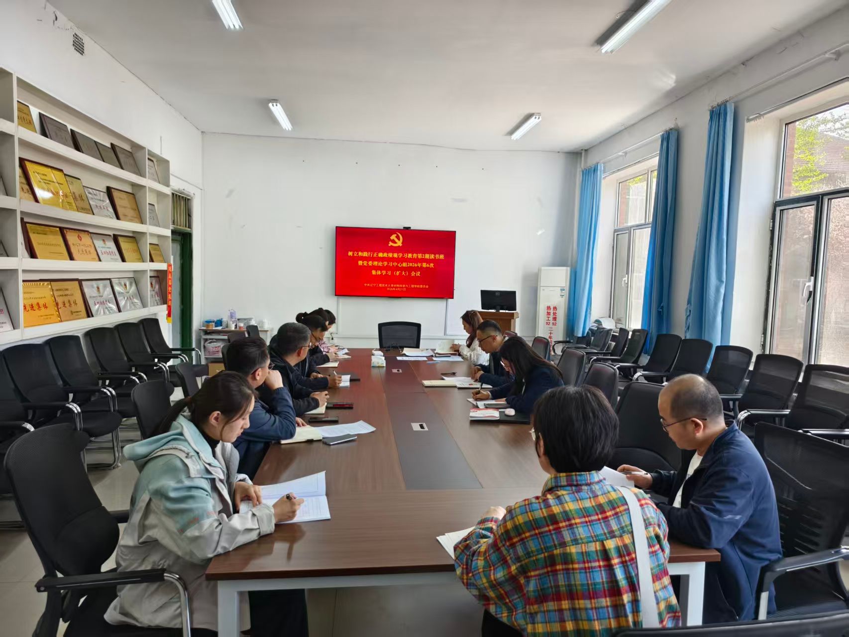 4月21日,学院党委举办树立和践行正确政绩观学习教育第2期读书班暨党委理论学习中心组2026年第6次集体学习(扩大)会。学院党委书记李松主持会议。学院党委副书记贺伊娜、副院长刘广柱领学《习近平关于树立和践行正确政绩观论述摘编》部分内容。金属材料系党支部书记赵斌、加工工程系党支部书记金红梅作交流发言。学院党委理论学习中心组成员、各教工党支部书记参加学习。