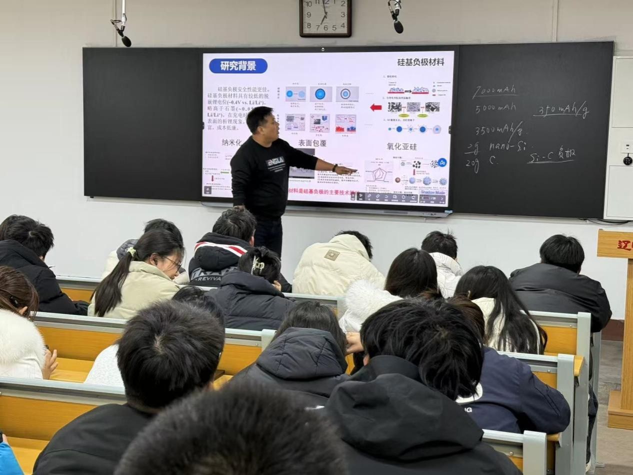 2025年11月11日,材料学院团委于新华楼202展开主题为“硅@碳复合材料在高性能锂离子电池中的应用”的教授博士论坛,本次教授博士论坛由王鸣老师主讲。
