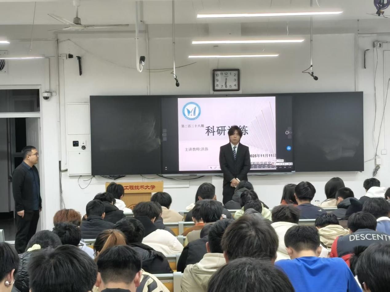 2025年11月11日,材料学院团委于新华楼206开展了主题“溶液直写增材制造聚酰亚胺高温密封件的界面强化与性能调控”的课外科研训练,本次训练由洪伟老师主讲。